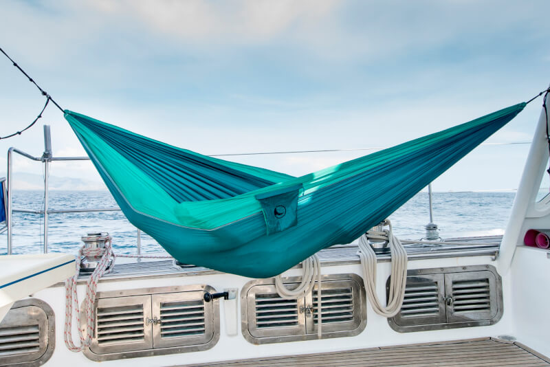 Besonders hervorzuheben: Kompakt und trotzdem unglaublich komfortabel; feinste Fallschirmseide; OEKO-TEX®-zertifizierte, handgemachte Qualität; intuitiver Aufbau ohne Knoten; praktische Seitentasche; inkl. Moonbag und S-Haken; faire Produktion.