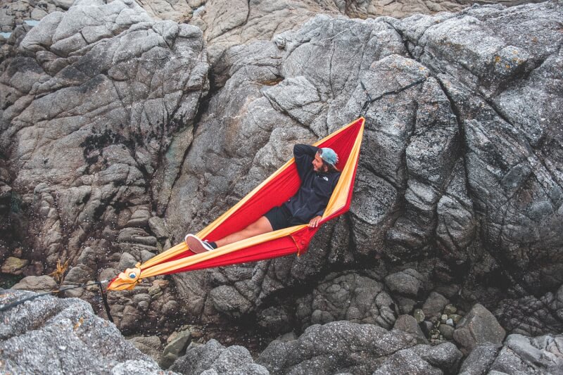 Besonders hervorzuheben: Multitalent & Leichtgewicht; OEKO-TEX®-zertifizierte, handgemachte Qualität; Dreifach-Nähte für extra Haltbarkeit; Aufbau in unter 1 Minute ohne Knoten; integrierte Seitentasche; inkl. Moonbag und S-Haken; faire Produktion.